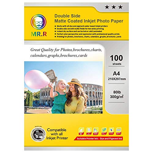 MR.R 300 gsm / m2 A4X100 fotopappersark Dubbelmatt fotopapper Omedelbar torkning Vattentät ljus vit för bläckstråleskrivare