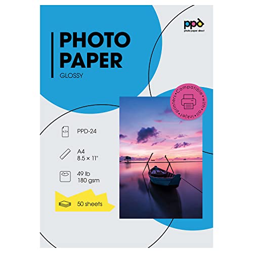 PPD A4 50 Ark 180g Glansigt Fotopapper för Bläckstråleskrivare - PPD-24-50