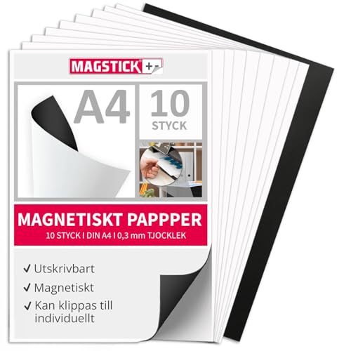 Set om 10 magnetpapper I vitt I DIN A4 I DIY I magnetisk baksida I kan skrivas ut med vanlig bläckstråleskrivare I för att skriva på, trycka eller som magnetiskt fotopapper I mag220