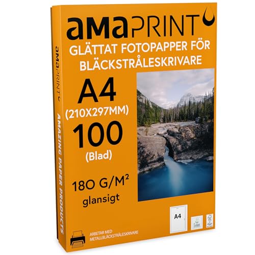 Amaprint 100x fotopapper A4 glättat 180 g/m² för bläckstråleskrivare - glansigt - vattentätt