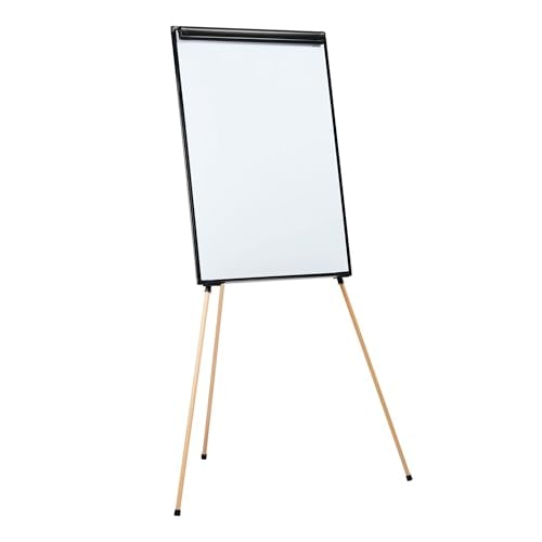 Bi-Office Essence Blädderblocksställ med Trestativ, Lackad Magnetisk Stålyta, Svart Aluminium och Naturlig Trästruktur