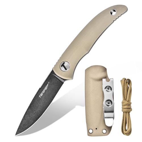 TONIFE Nova Fast bladkniv med justerbart Kydex-fodral och fallskärmslina, 6,8 cm hel bladhalskniv för jakt, fiske, camping och överlevnad