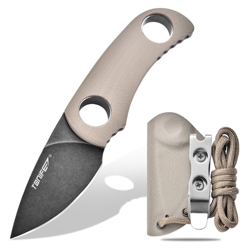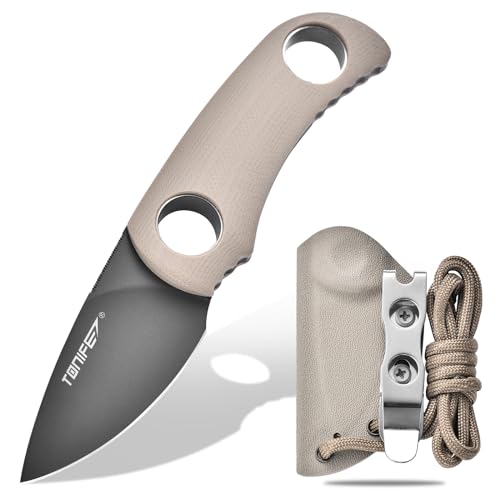 TONIFE 4,7 cm fast bladkniv, minihalskniv med Kydex-fodral och snodd, bärbar EDC fast kniv för överlevnad utomhus (varm sand + titan gary)