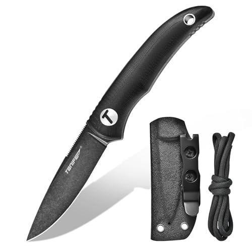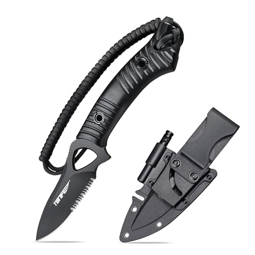 TONIFE Explorer Fast Bladkniv med Fodral 8Cr14MoV Blade Multifunktionell Överlevnadskniv, Förstärkt Glasfiber med Nylonhandtag för EDC Kniv (Titan Svart med Serret)