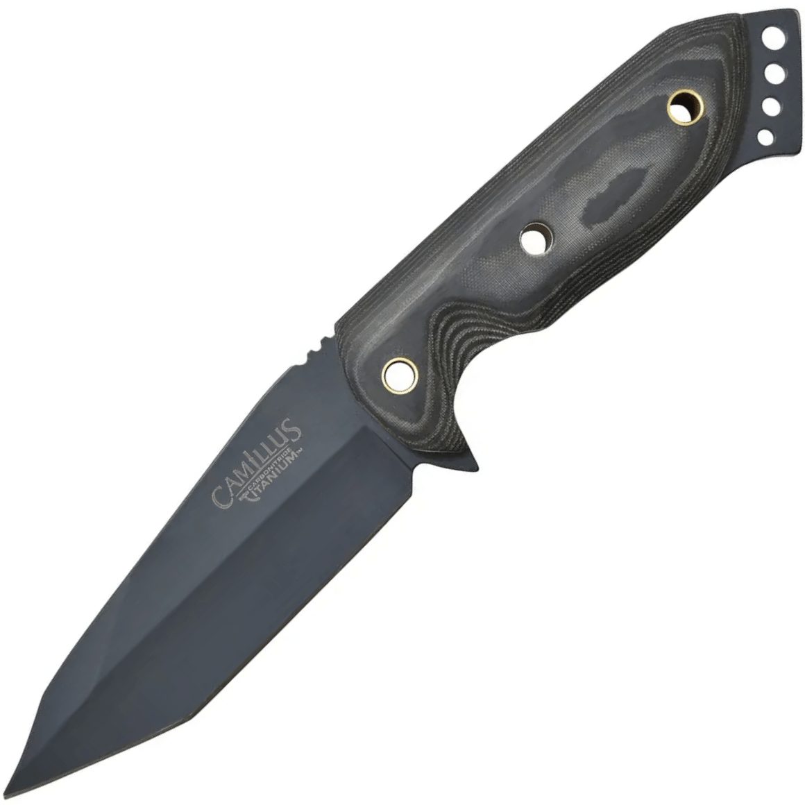 CAMILLUS 7,75” FAST BLADKNIV / TANTO BLAD / AUS-8 / SVART MICARTA HANDTAG / NYLONSLIDA CAM-185