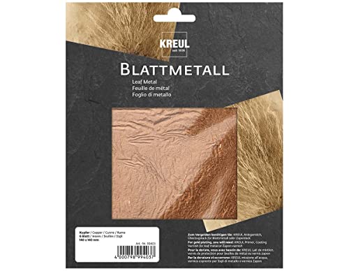 Kreul 99403 – bladmetall koppar, 14 x 14 cm, 6 ark, för högblanka, metalliska effekter, för förfining av trä, glas, papper, duk, kartong, frigolit, plast, vax, keramik och mycket mer.