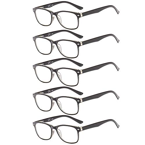 Suertree 5-pack anti-blå datorläsglasögon, blåljusfilter ögonglasögon, blockerar UV datorglasögon, visuella glasögon för kvinnor, läsglasögon för män, svart 1,5 BM161