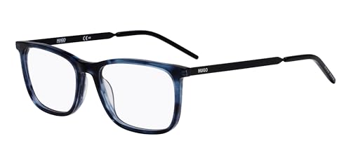 HUGO Rektangulära acetatglasögon i randig blå för män, glasögon med synstyrka, tillval med solglasögon nyanser eller blåljusfilter (modell Hg 1018)