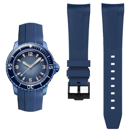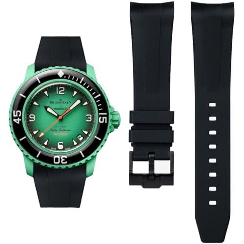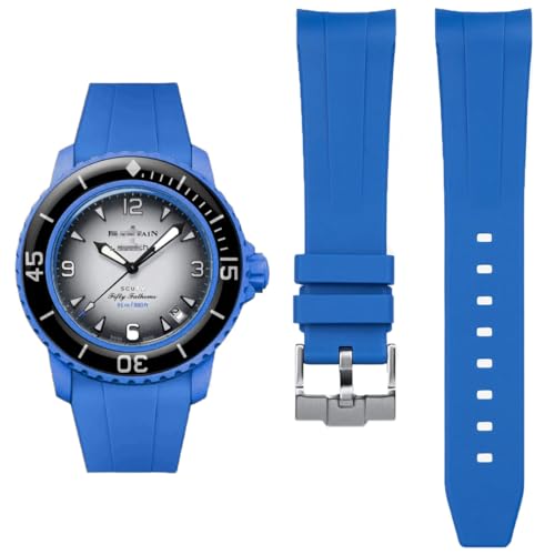 HEYOZURY Klockarmband för Blancpain X Swatch Fifty Fathoms 22mm mjuk gummi böjd ände ersättning armband för Blancpain x Swatch Mens Ladies med verktyg Ta bort