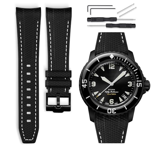 HORACE 22mm gummiklockarmband kompatibelt med Blancpain x Swatch Scuba Fifty Fathoms (svart - vita sömmar)