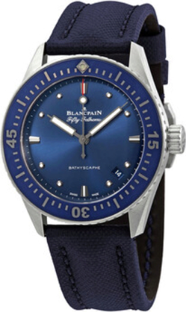 Blancpain Herrklocka 5100-1140-O52A Fifty Fathoms Blå/Läder Ø38 mm