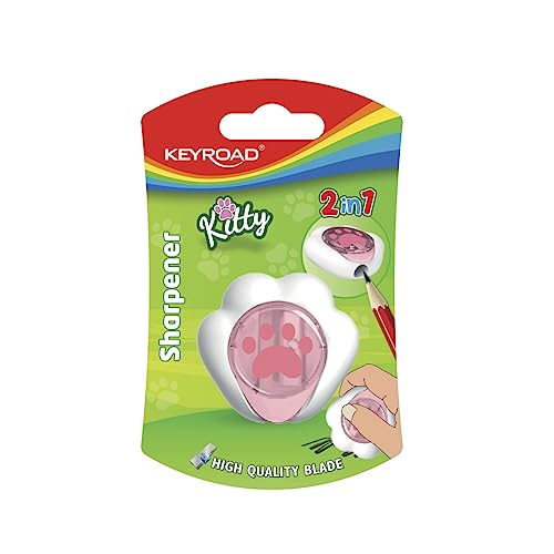 KEYROAD Pennvässare KITTY CAT med en behållare/1 st./multifunktionell/av plast/blad av stål/blyertspennor och färgpennor/blister – blandade färger