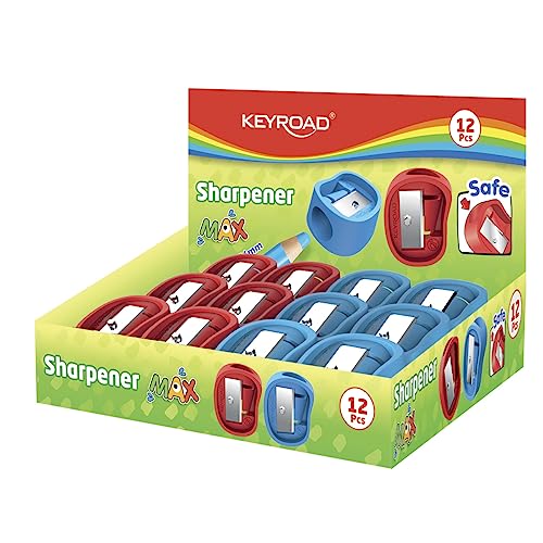 Keyroad Ergonomisk pennvässare enkel/12 stycken/tillverkad av plast/blad av stål/blyertspennor och färgpennor/blandade färger/för dagis förskola och skola