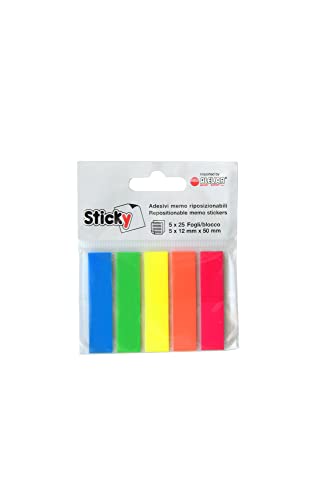 Alevar Sticky Filmslips, 12 x 50 mm storlek, 5 block 25 självhäftande blad, 125 självhäftande flikar, blandade FLUO-färger blågul-rosa-orange-grön
