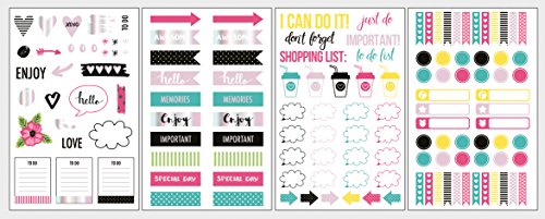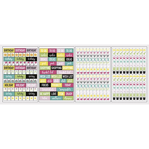Rayher 60915000 klistermärken ord och ikoner set, lycklig, förpackning 4 blad, dekaler, symboler, ord, blandade färger