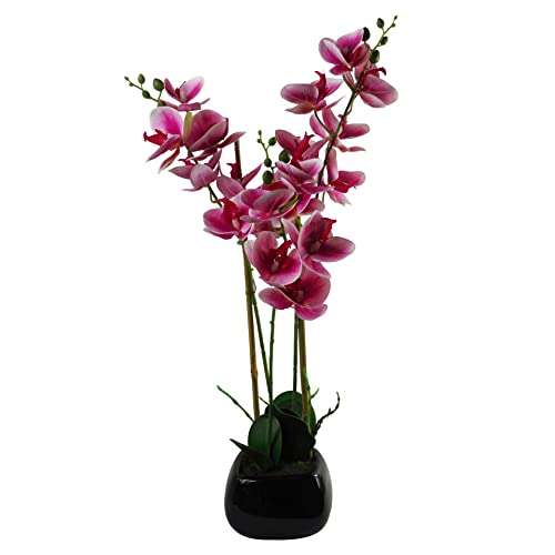 Blad 65 cm konstgjord orkidé keramisk planterare, blandade material, mörkrosa svart, 70 cm