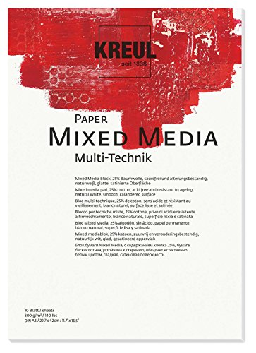 Kreul 69022 – Papper Mixed Media, DIN A3, 200 g/qm, 10 blad, syrafri och åldersbeständig, naturlig vit, för alla blandade media Fine Art tekniker, för våt eller torr användning