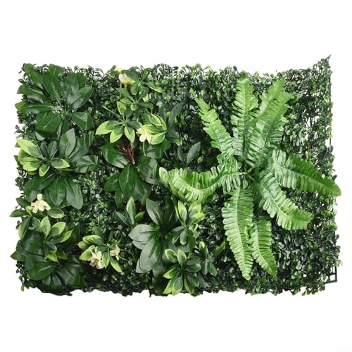 Konstgjorda häckpaneler, konstgjort trädgårdsgräs, fuskfyrkantiga gröna blad figurklippta blandade ormbunkar buske gräs för hem trädgård utomhus väggdekoration (#1)