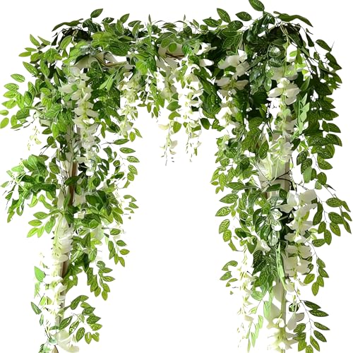ZEACCT 2 x 7 fot konstgjord blåregn krans konstgjord blomma siden murgröna hängande växt väggdekoration växt blomma konst firande ceremoni hem bröllop trädgård dekoration (vit)