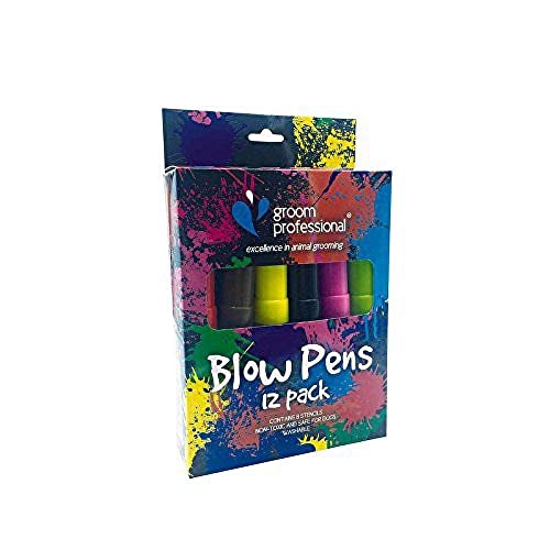 GROOM PROFESSIONELLA kreativa blåspennor för husdjursvård – 12-pack med schabloner – tillfälligt bläck för hundar – säker, giftfri färg – kreativ blåsapplikation – snabbtorkande färger