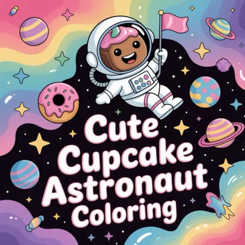 Cute Cupcake Astronaut Coloring: Blast off into a sweet galaxy of fun with this adorable cosmic coloring adventure for kids and adults!
