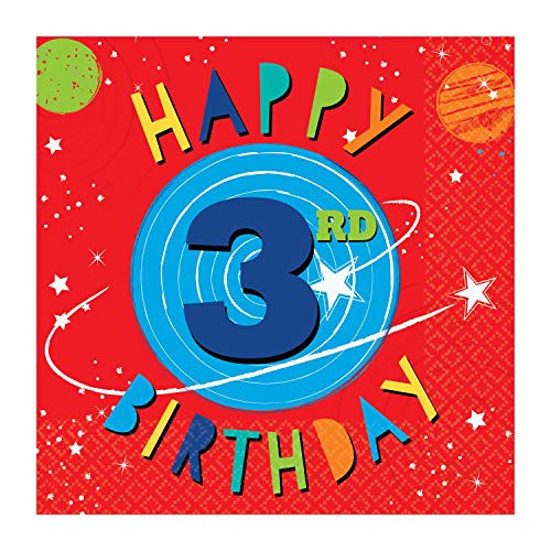 Amscan 5122781 – Blast Off Space barn 3:e födelsedagsfest lunchservetter – 16-pack