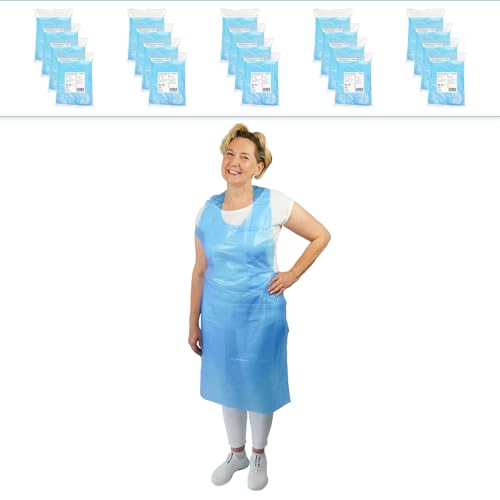 ARNOMED PE engångsförkläden 50st, förkläde vattentät, plastförkläden 30µ tjock, blockerade engångsförkläden storlek 75x150cm, förkläde blå oljebeständigt, engångs slaktarförkläde medicinskt förkläde