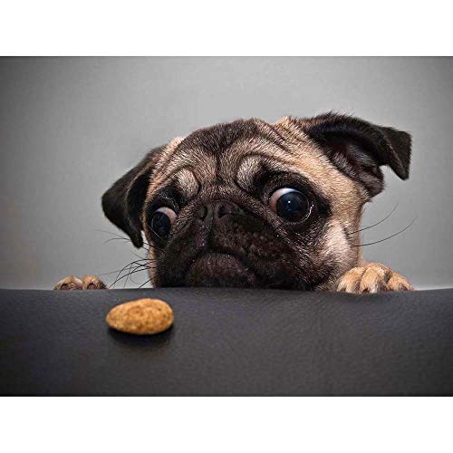 Wee Blue Coo djur fotografi porträtt mops hund godis mat ögon söt konst tryck affisch väggdekor 30 x 40 cm