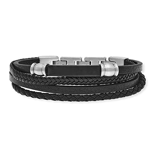 Save Brave Dexter Herren Armband geflochtenes schwarzes Leder mit Klappverschluss aus Edelstahl - Länge 22 cm - ohne Nickel und Blei - inkl. Schmuckverpackung