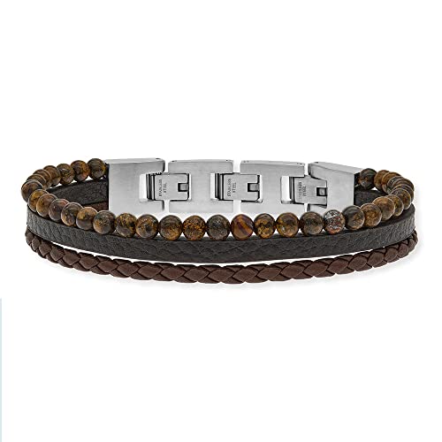 Save Brave Flynn geflochtenes braunes Leder Herren Armband mit Klappverschluss aus Edelstahl - in der Länge erweiterbar 18,5 + 3cm - ohne Nickel und Blei - inkl. Schmuckverpackung