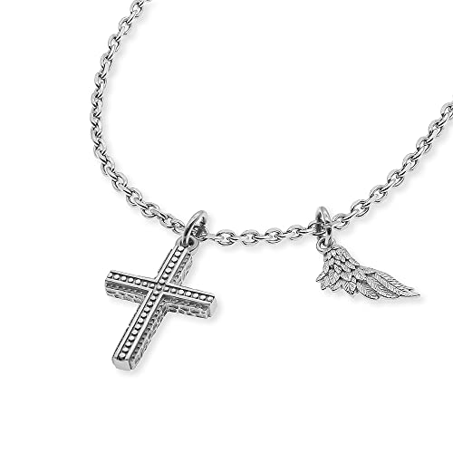 Save Brave silberne Herren Halskette aus Edelstahl mit Flügel und Kreuz Anhänger - Karabinerverschluss - Länge: 60 + 10cm - ohne Nickel und Blei - inkl. Schmuckverpackung