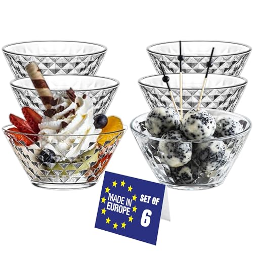 LAV kristall moderna dessertskålar glas set 6, 330 ml 100% BLEI fria glasskålar, stapelbara glasskålar, puddingskålar, dessertskålar glas, salladsskål, såsskålar