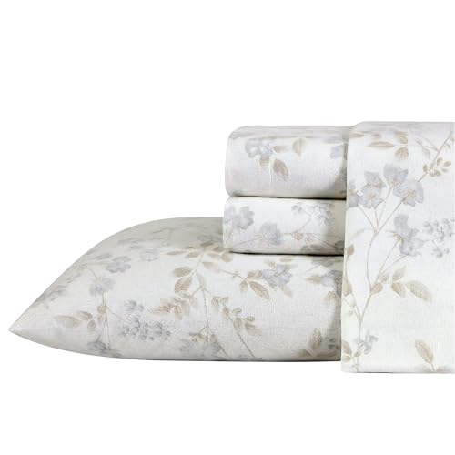Laura Ashley Home | Fawna kollektion | premium supermjuk 100% bomull flanell lakanset, anti-rynkor, anti-blekning, fläckbeständig och allergivänlig (drottning, grå)