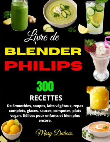 Livre de Blender Philips: 300 Recettes de Smoothies, soupes, laits végétaux, repas complets, glaces, sauces, compotes, plats vegan, Délices pour enfants et bien plus encore.