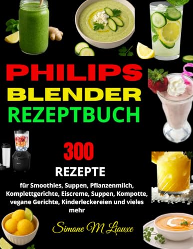 Philips Blender Rezeptbuch: 300 Rezepte für Smoothies, Suppen, Pflanzenmilch, Komplettgerichte, Eiscreme, Suppen, Kompotte, vegane Gerichte, Kinderleckereien und vieles mehr