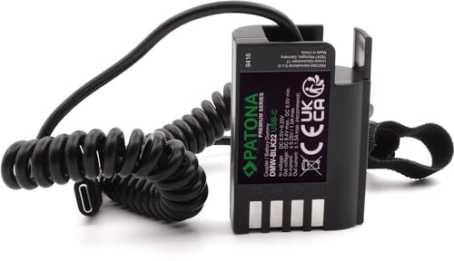 PATONA DMW-BLK22 E DMW-BLF19 E USB-C Dummy Battery (Dummy) - Strömadapter, laddare, USB-C-adapter med fjäderkabel... (9416)