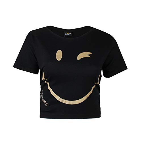 SmileyWorld Dam metallisk smiley blink t-shirt, svart (svart blk), 16 (storlek: X-Large), Svart (svart blk), XL