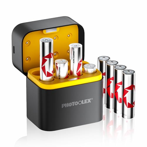 PHOTOOLEX Uppladdningsbara litiumbatterier AA 1,5 V, 3600mWh hög kapacitet, 1600 långa cykler, 8 x AA litiumbatterier med integrerad laddningslåda för blink kamera VR headset Xbox Controller Flash