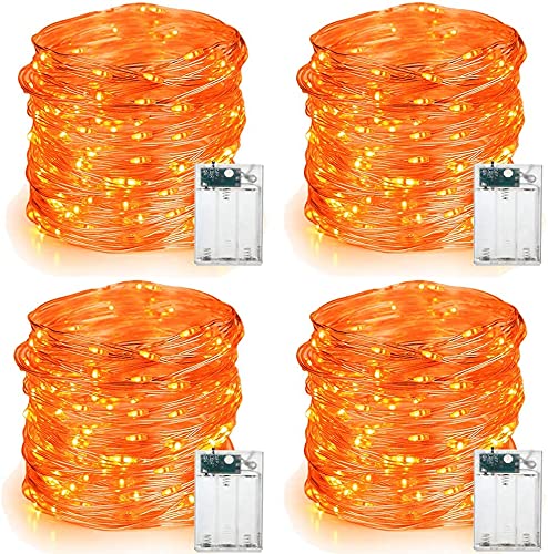 BrizLabs Orangea dekorativa höstlampor, 60 LED, inomhus-ljusslingor, batteridrivna blinkande mikro-ljusslinga av silvertråd för halloween, thanksgiving, jul, höst, hem, fest, gör-det-själv, 4-pack