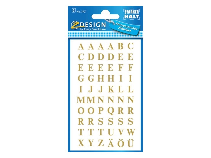 Z-Design 3727 Etiketter Med Bokstäver, Litet Format, 120 Etiketter, Guld Guld 1650X850x10mm (120 St) - (120 St Per Blisterförpackning X 10 Blisterförpackningar)