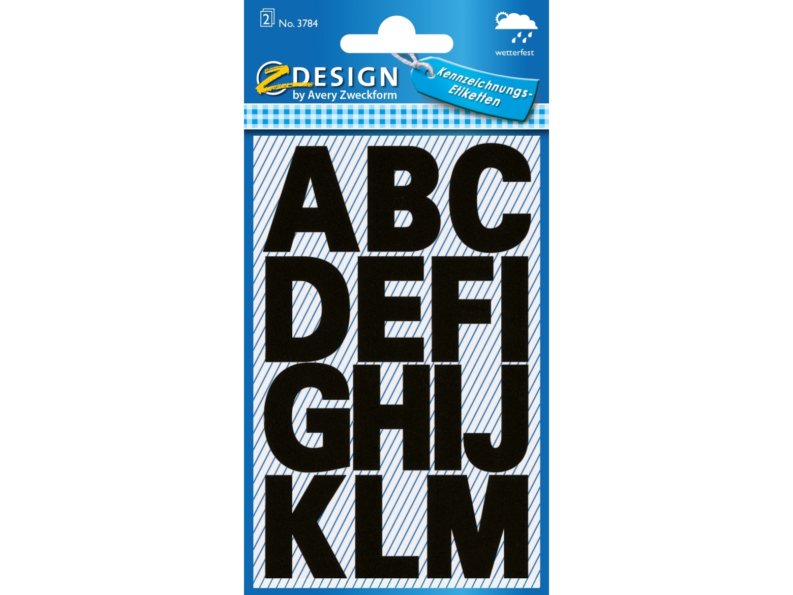 Z-Design 3784 Etiketter Med Bokstäver, Litet Format, 26 Etiketter, Svart Svart 165X85x1mm (30 St) - (30 St Per Blisterförpackning)