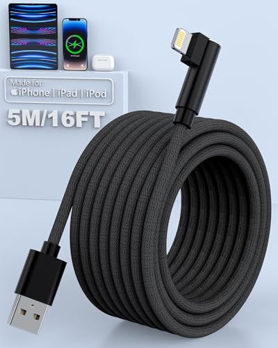 Quanlex 5 m extra lång iPhone-laddarkabel, 4,6 m 90 graders blixtkabel, hög hastighet/datasynkronisering Apple iPhone-laddningskabel för Apple iPhone 14/13/12Pro/11Max/XS/XR/XS