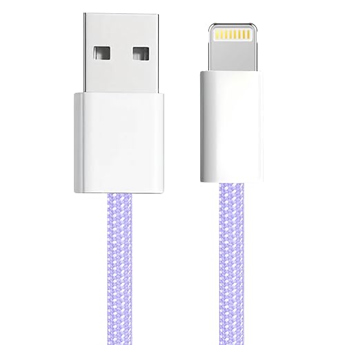 APM 600401 - MFI-certifierad blixtkabel för enheter - laddningskabel och synkronisering - USB A hane och MFI hankontakt - smartphone och surfplatta - 1 m lång - pastelllila