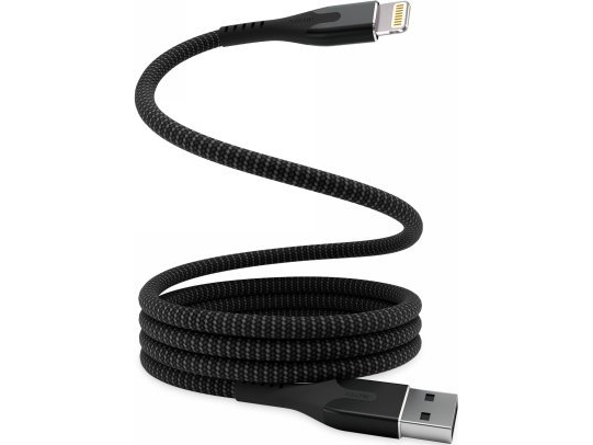 Usb Statik Magstack Usb-A - Blixtkabel 1M, Nylonflätad, Magnetiskt Upprullningsbar (Svart)