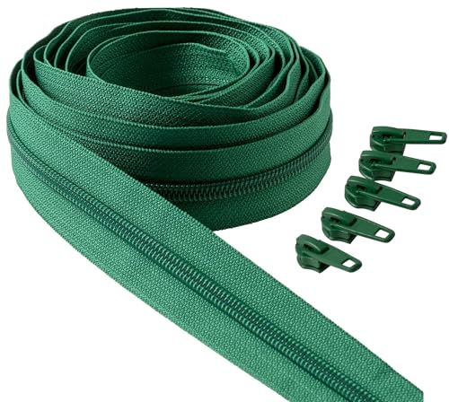 IPEA Blixtlås med kontinuerlig kedja grön 5 meter lång + 15 metallskjutreglage – tillverkad i Italien – kedja storlek #5 – dragkedjor i nylon – dragkedja – dragkedja – skärbar för Metro-sömnad – 30 mm