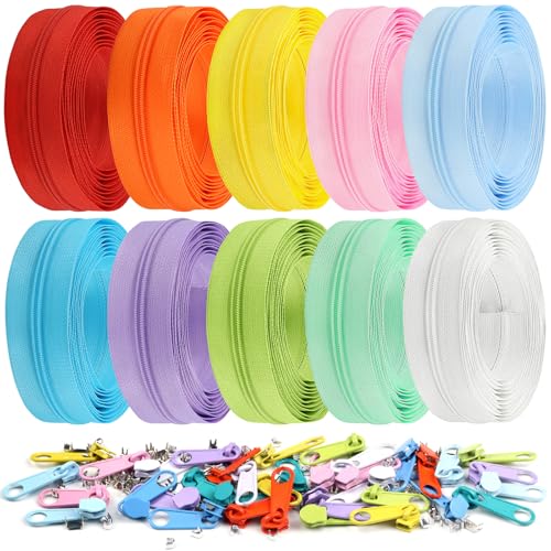 DOITEM 2,8 mm, 10 färger, dragkedjor, 28 m, nylon, oändligt blixtlås, set med reglage och dragkedja för sömnad och hantverk