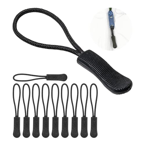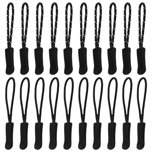 MAXQUU 20 stycken dragsnören med dragkedja, blixtlås-etiketter, dragsnören, jacka-dragkedja, ersättningsdragare med dragkedja (svart)