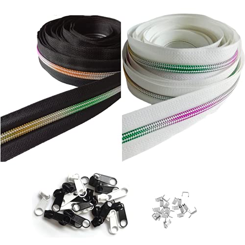 rumitpan dragkedja, regnbåge, 10 m, 5 mm, nylon, ändlös dragkedja med 30 blixtlås och 60 ändstycken, dragkedjor, ändlös, spiralformad, metervara, delbar, 5 cm för väska, pennfodral, kläder, sängkläder