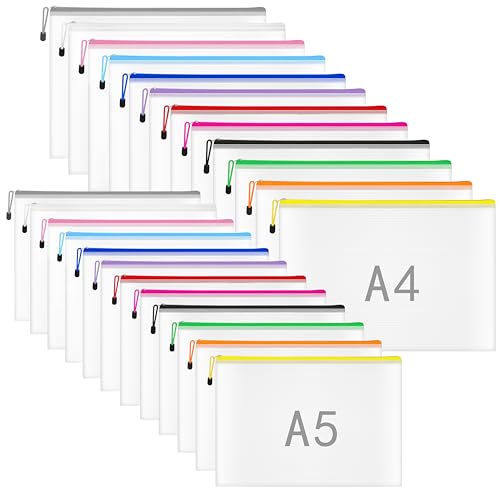 Belle Vous 24 Pack Plast Nätpåse med Dragkedja – Dokument Zip Blixtlås Filväska/Mapp (8 Färger) – Vattensäker Plånbok för Reseaccessoarer, Kosmetika, Skola/Kontor, Pennor, eller Räkningsväska