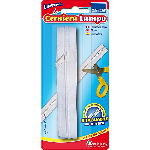 IPEA Dragkedja vit Continua längd 5 meter + 25 reglage av metall – kedja storlek #5 – tillverkad i Italien – dragkedjor av nylon – kan skäras till metervara – bredd 30 mm – vit Blixtlås